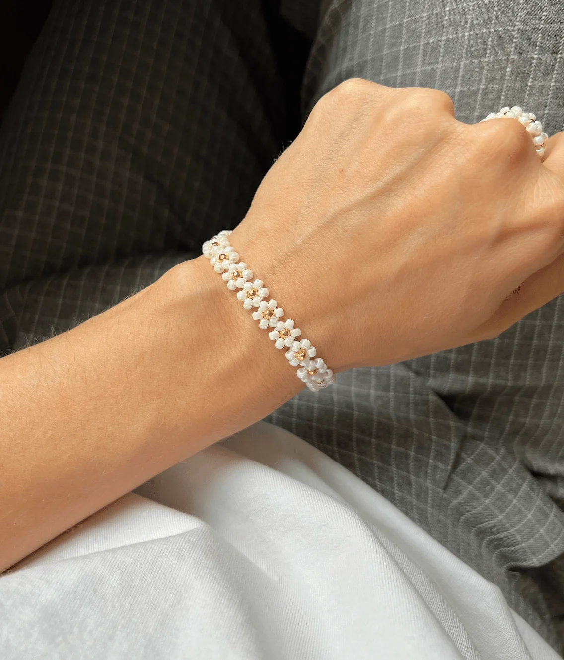 Bransoletki stokrotkowe dostępne są też w innych (dowolnych) kolorach i kombinacjach (przykładowe wzory na zdjęciu).