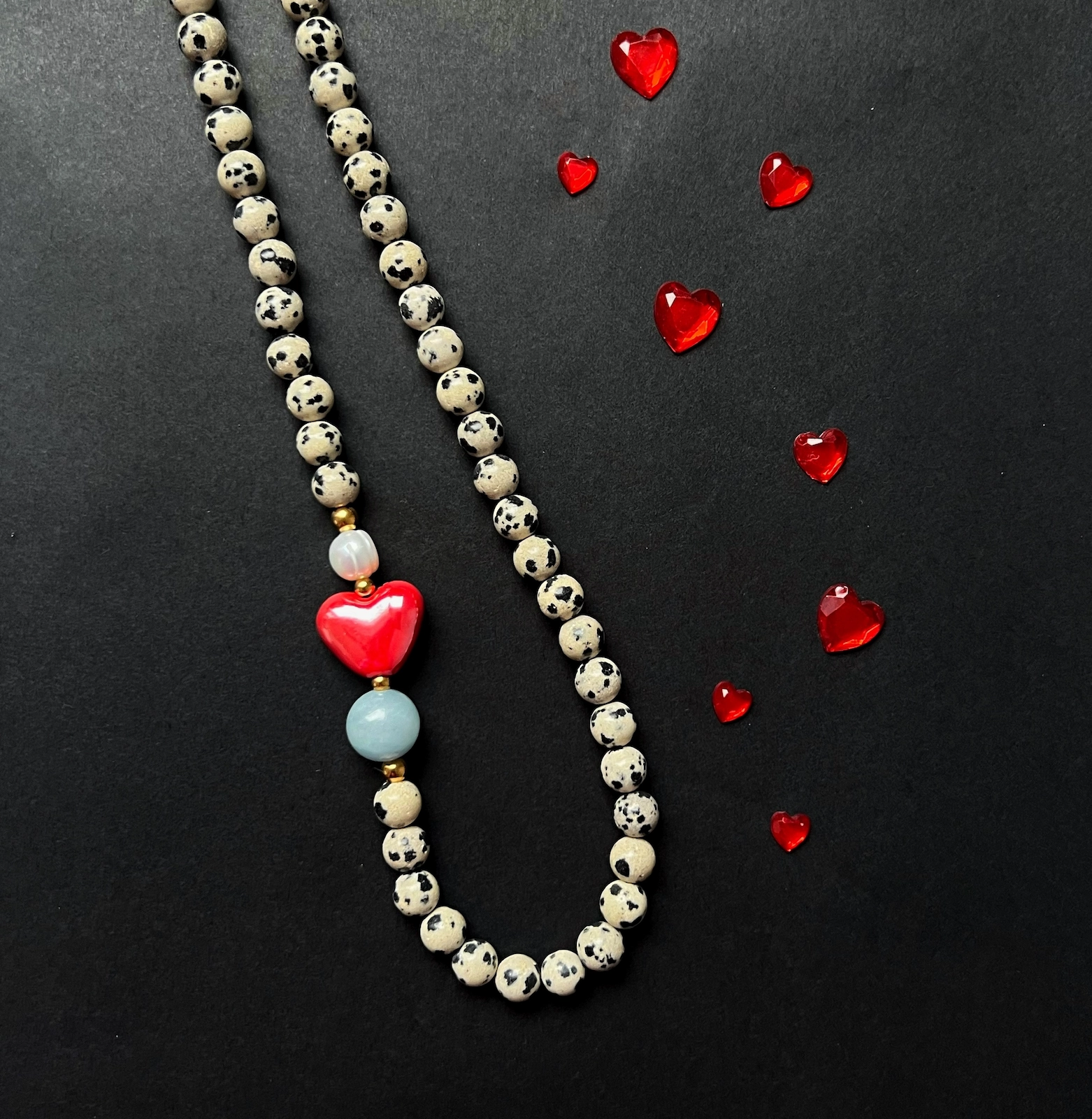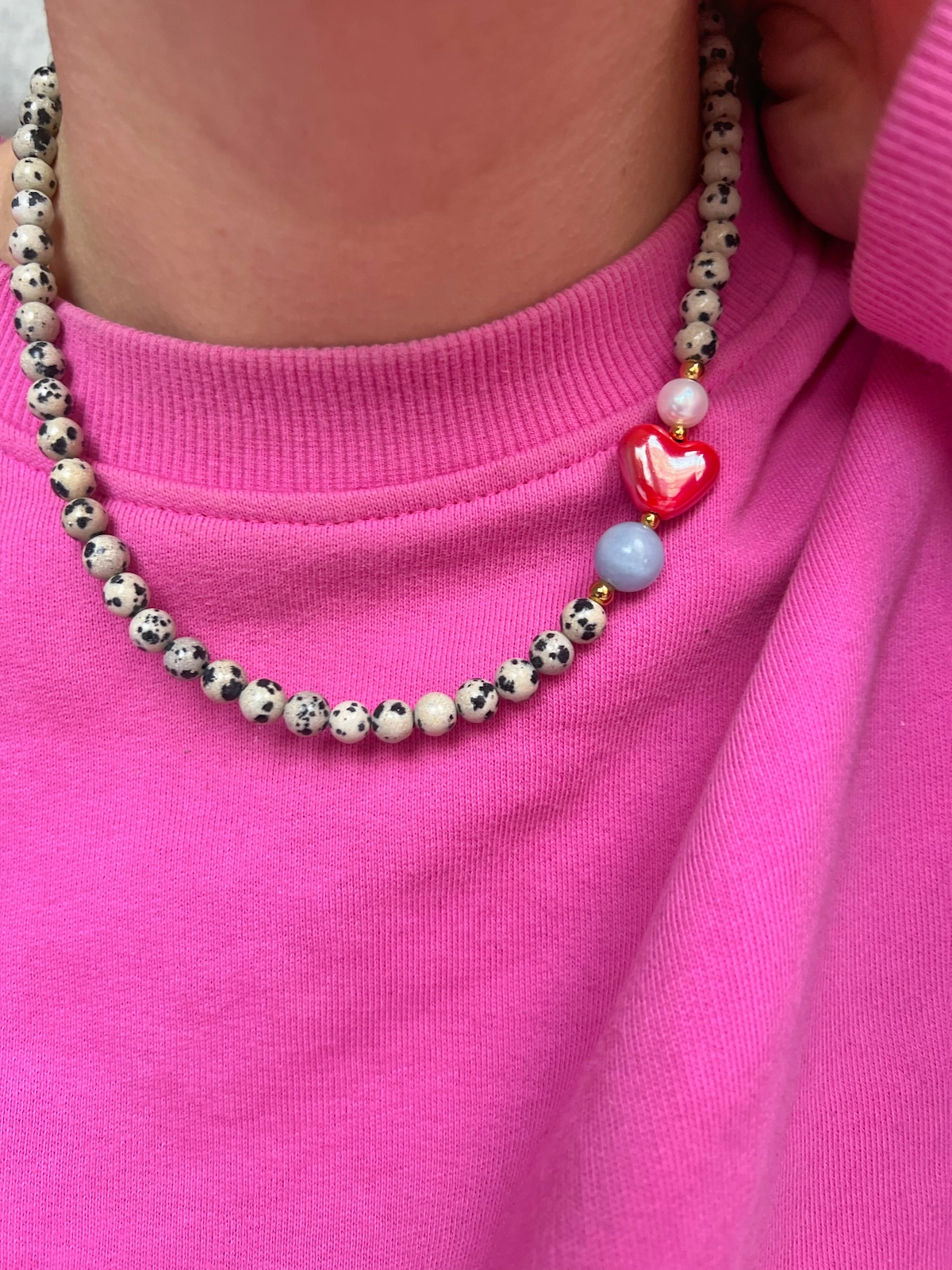 CHOKER SERCE & JASPIS DALMATYNSKI